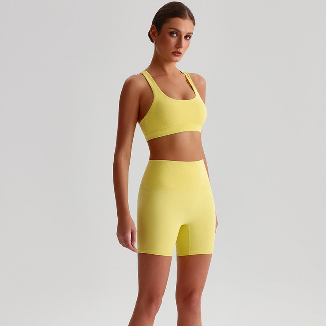 With a fitted cut , criss-cross back , and high waist , this set combines support, stretch, and elegance , creating a versatile piece for yoga, fitness, or functional training , but also perfect for an active everyday style .