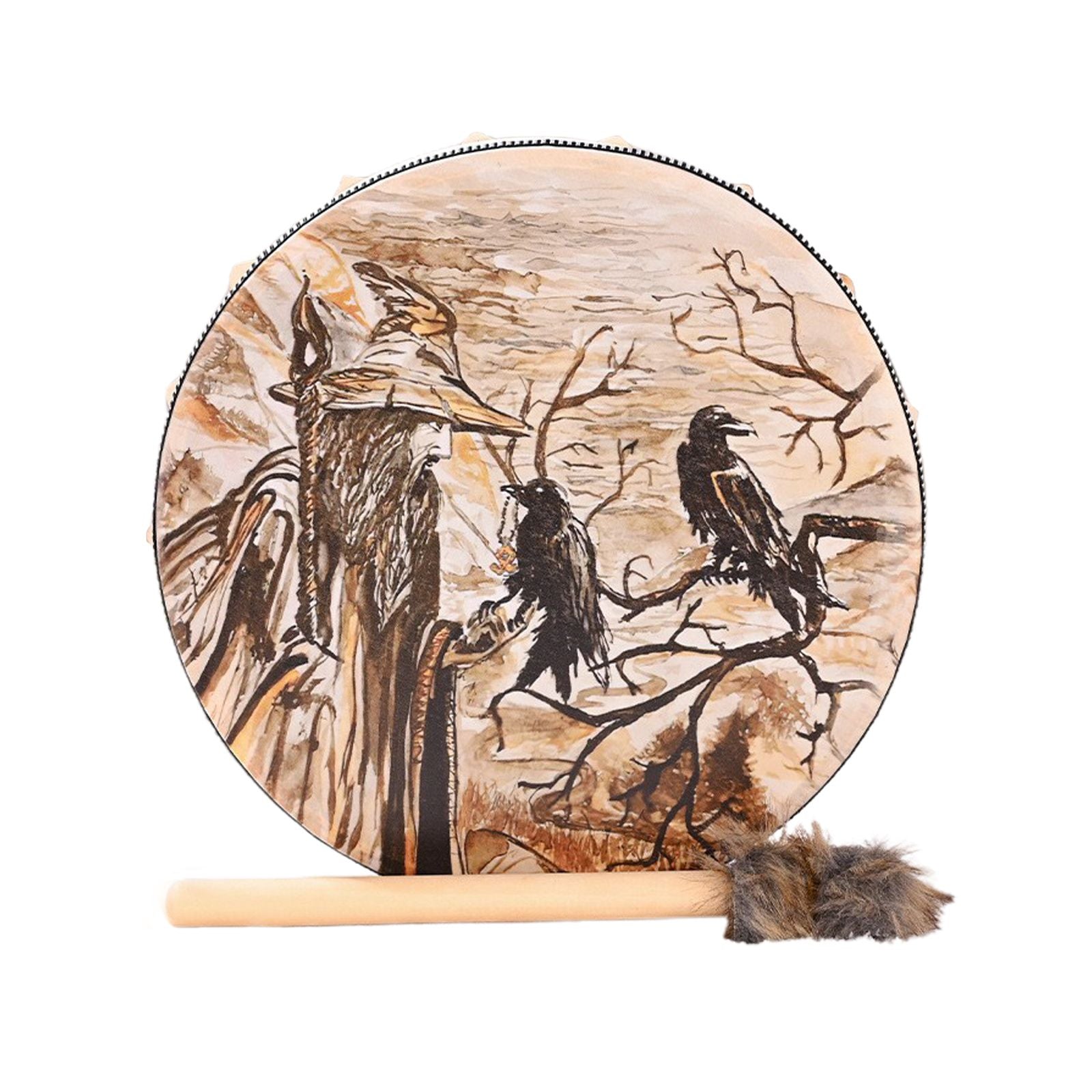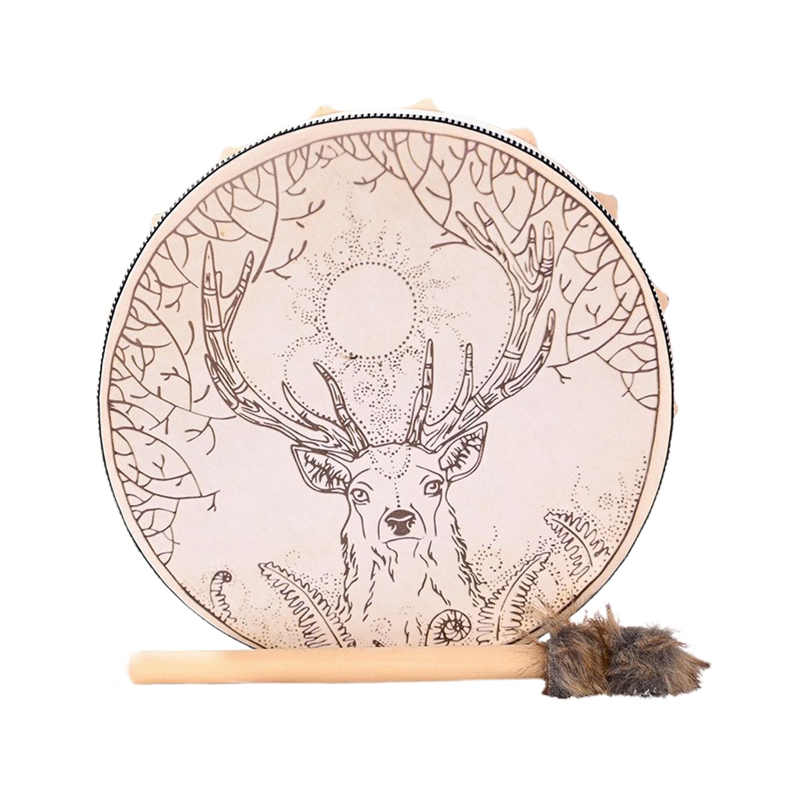 - Função: Este tambor xamânico é utilizado como uma ferramenta de cura sonora, trazendo os benefícios da terapia sonora para ajudar a aliviar o estresse, equilibrar os chakras e promover o bem-estar geral. Além disso, é perfeito para ser usado em práticas xamânicas, meditações e como um instrumento musical multifuncional.